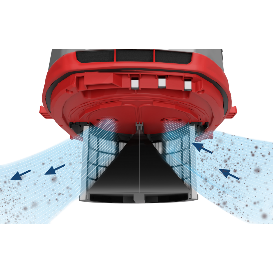 - HEPA 13 vouwfilter – zeer hoge filtratiegraad met tweekamer-systeem