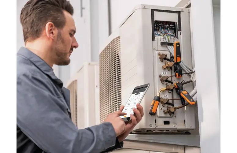 De professionele en compacte hogedrukmeter Testo 549i kan via de Testo Smart App met uw smartphone of tablet worden bediend en is daarmee ideaal voor service en het opsporen van fouten bij airco’s en koelsystemen.
