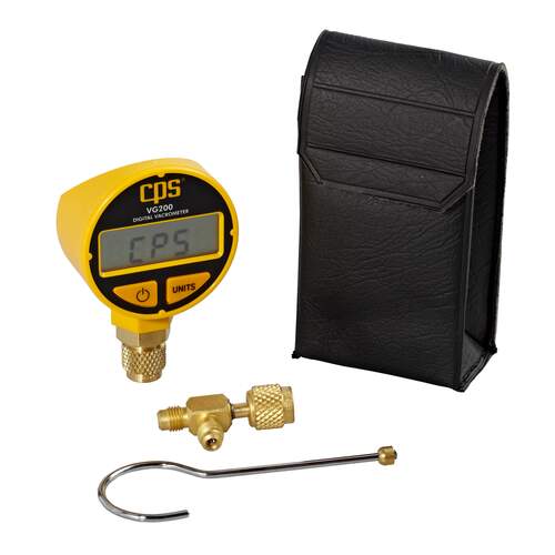 Digitale vacuümmeter. Deze meter wordt geleverd met ophanghaak en opbergtas.