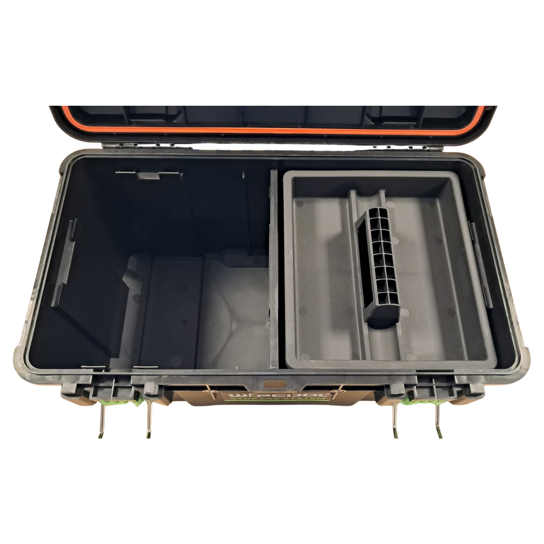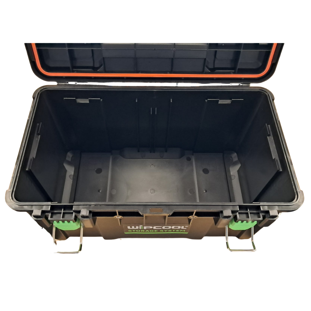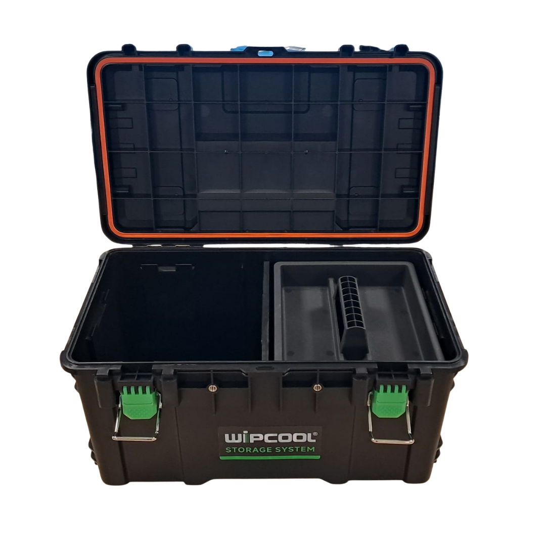 De WIPCOOL Tool Box is ontworpen voor intensief professioneel gebruik en bestand tegen de zwaarste omstandigheden op de werkplek. De robuuste behuizing is vervaardigd uit hoogwaardig, slagvast polymeer en versterkt met metalen componenten, voor uitstekende duurzaamheid en hoge draagkracht.